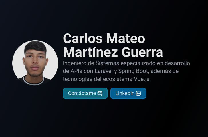 Ingeniero de Sistemas | Desarrollador Backend especializado en APIs RESTful con Laravel y Spring Boot | Frontend con Vue.js